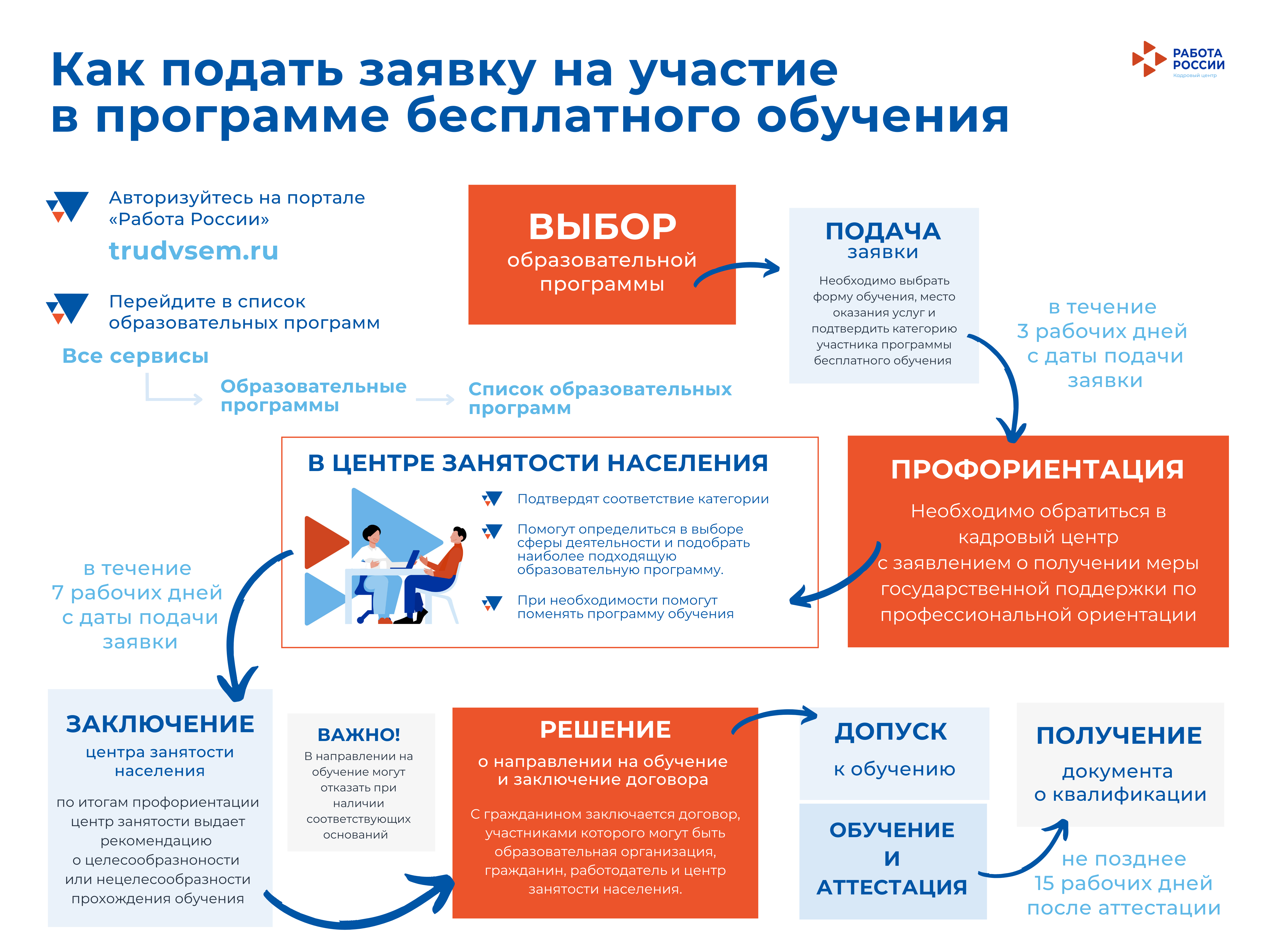 Принять участие в мероприятиях по обучению можно один раз в период реализации федерального проекта «Активные меры содействия занятости», входящего в состав национального проекта «Кадры».